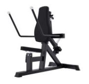 Профессиональный тренажёр для коммерческого использования T923 Наклонная тяга к поясу предназначен для базовой проработки широчайших мышц спины, трапециевидных, ромбовидных и задних пучков дельтовидных мышц, а также бицепсов и предплечий. Конструкция обеспечивает естественную траекторию движения, позволяет выполнять упражнения в разных вариантах хвата и изменять угол положения корпуса для акцента на целевых группах мышц. Основание выполнено из стального овального профиля 200×88 мм. При изготовлении тренажера использован металл толщиной 3 мм для максимальной структурной прочности. Изготовлено на высокоточном лазерном оборудовании с ЧПУ. Несущие узлы рамы выполнены по технологии роботизированной сварки, что исключает человеческий фактор и повышает эксплуатационные характеристики оборудования. На металлические элементы после антикоррозийной обработки нанесено двухслойное порошковое напыление в электростатическом поле для обеспечения максимального сцепления и структурной прочности. Цветовое исполнение: рама - графит, рычаги – оранжевый (возможна индивидуальная окраска под проект). Все соприкасающиеся элементы оборудованы демпферами для защиты рамы от механических повреждений при ударных нагрузках, снижения вибрации и амортизации при завершении подхода. Нагрузка: свободные веса. Подвижный рычаг перемещается по двум направляющим длиной 1380 мм, выполненным из нержавеющей стали. В узлах скольжения установлены линейные подшипники, обеспечивающие плавный и стабильный ход даже при динамических нагрузках. В нижней части направляющих предусмотрены пружинные и резиновые демпферы, гасящие ударные нагрузки при завершении амплитуды движения. Расстояние между направляющими: внутреннее: 805 мм, внешнее: 900 мм (с учётом диаметра направляющих). На подвижном рычаге установлены два хромированных накопителя для свободных весов из толстостенной стальной трубы под диски с посадочным диаметром 50 мм. На накопителях предусмотрены фиксаторы дисков – ограничительные штифты, выполненные из металлического стержня с пластиковым наконечником. Ограничительные штифты предотвращают смещение грузов во время выполнения упражнения. Общая длина накопителя: 310 мм, рабочая длина: 285 мм (до ограничительного штифта). В местах сопряжения накопителей с рамой установлены конические демпферы длиной 50 мм для защиты покрытия от повреждений. Для хранения дисков на задней части рамы установлены два вертикальных накопителя длиной 140 мм, диаметром 45 мм, с основанием из металла и внешним резиновым покрытием. Расстояние между накопителями: 440 мм. На тренажёре предусмотрено две платформы: – нижняя стационарная (для захода на тренажёр) длиной 290 мм, шириной 700 мм, с закруглёнными кромками для безопасности. – регулируемая наклонная платформа длиной 545 мм, шириной 680 мм (в крайних точках), с закруглёнными кромками для безопасности. Наклонная платформа регулируется в шести фиксированных положениях при помощи полуавтоматического фиксатора и газлифта. Газлифт облегчает подъём платформы, а при опускании обеспечивает мягкий контроль хода. Платформы для ног выполнены из рифлёного стального листа толщиной 4 мм, исключающего соскальзывание во время выполнения упражнения. На наклонной платформе установлена металлическая рукоять длиной 60 мм и шириной 170 мм, пре